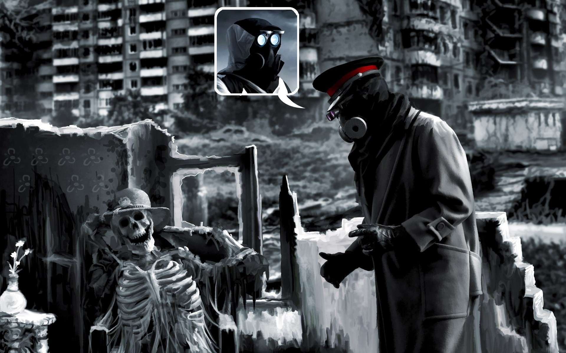 Lobo de cuento de hadas con cuernos de ciervo entre rascacielos destruidosLobo de cuento de hadas con cuernos de ciervo entre rascacielos destruidos