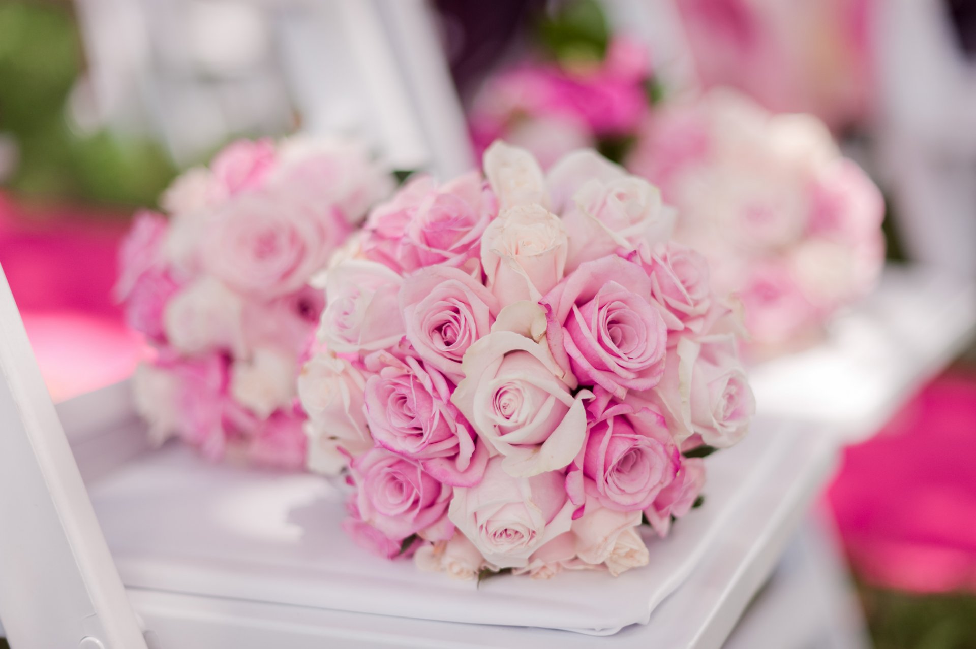 Vista desde arriba de un enorme y delicado ramo de rosas rosadas
