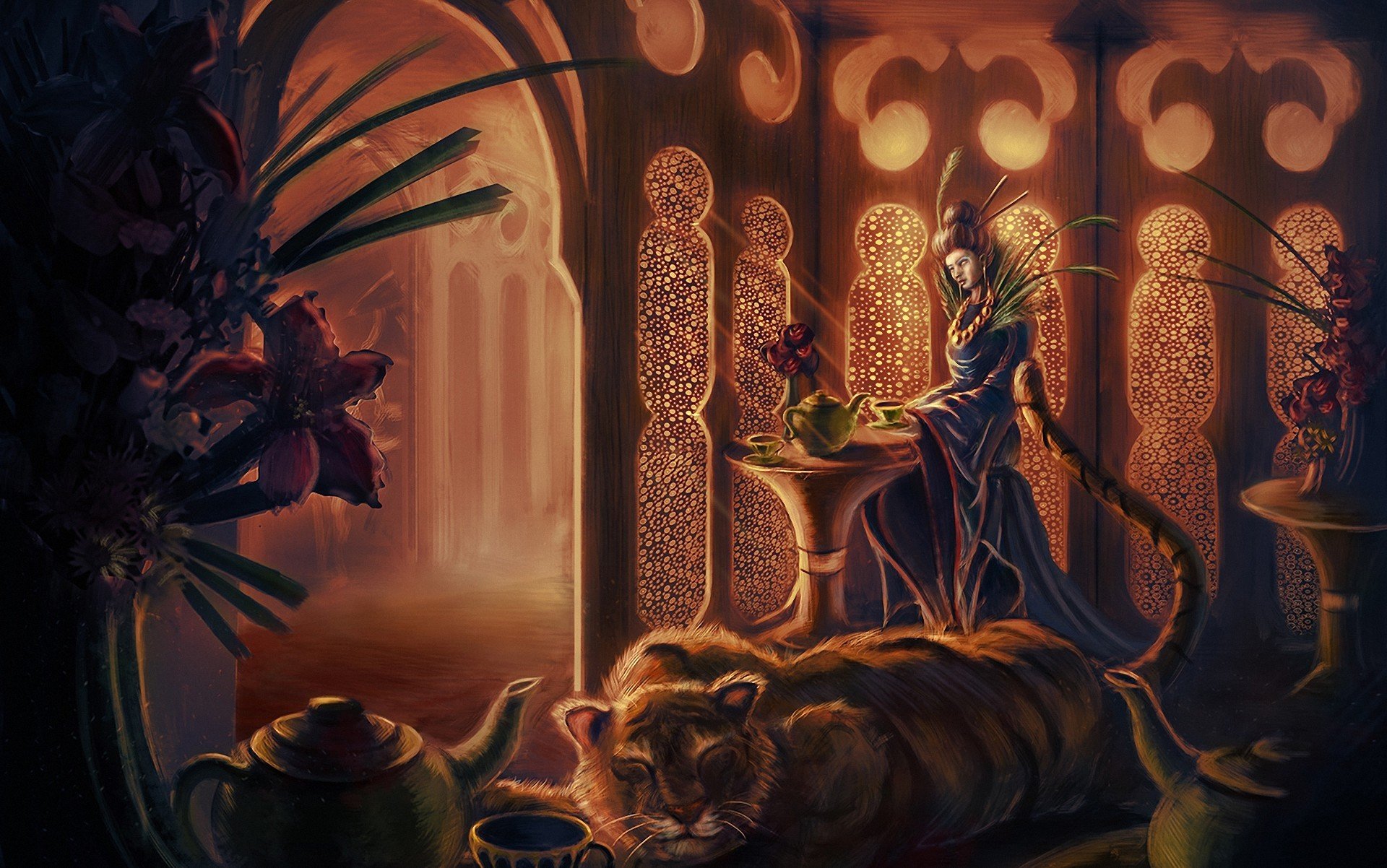 Tigre de perfil con la boca abierta con colmillos. tigre gato salvaje bostezaTigre de perfil con la boca abierta con colmillos. tigre gato salvaje bosteza
