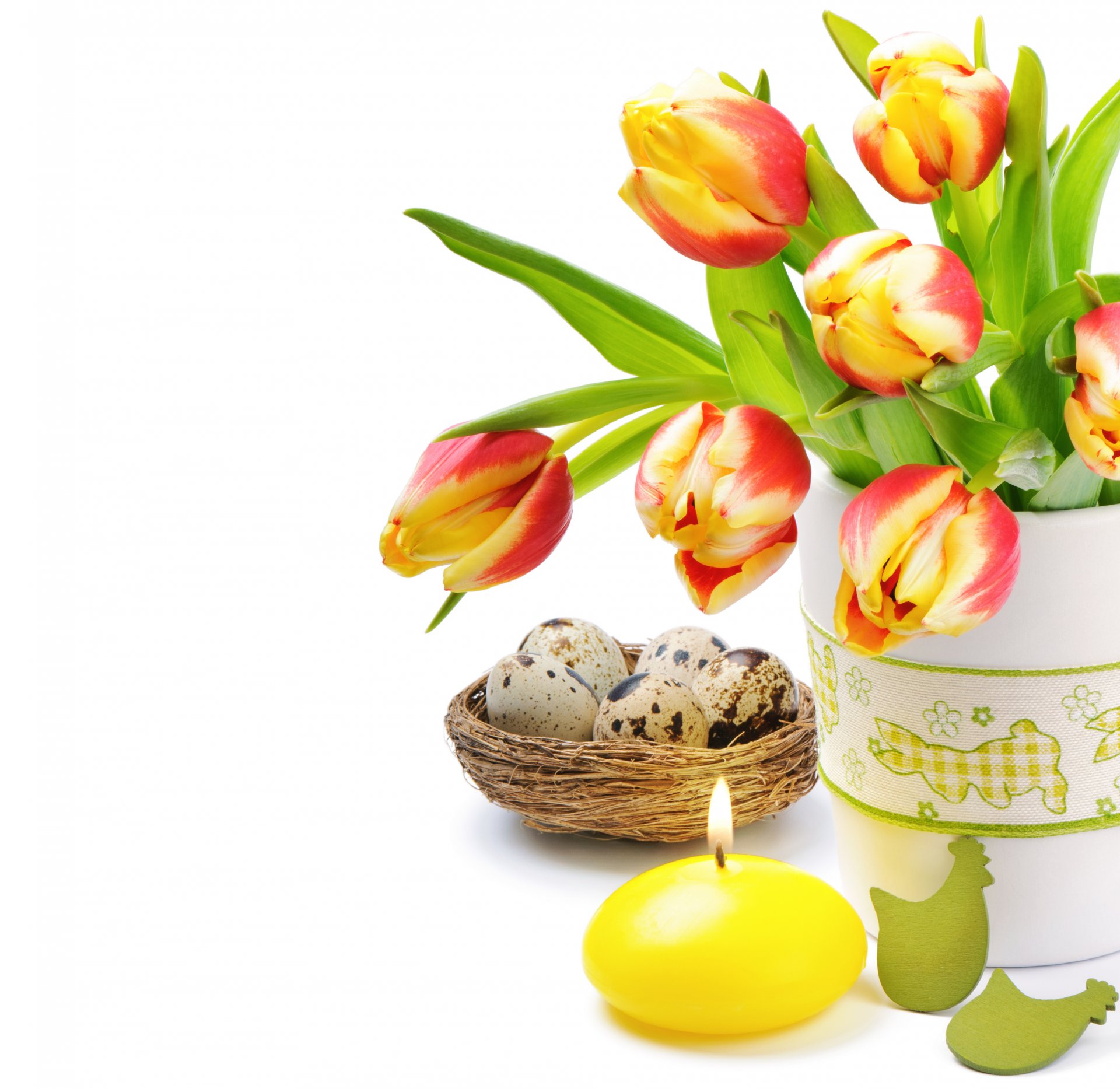 Fiesta de la santa pascua, huevos sobre la mesa y gerberas festivasFiesta de la Santa Pascua, huevos sobre la mesa y gerberas festivas