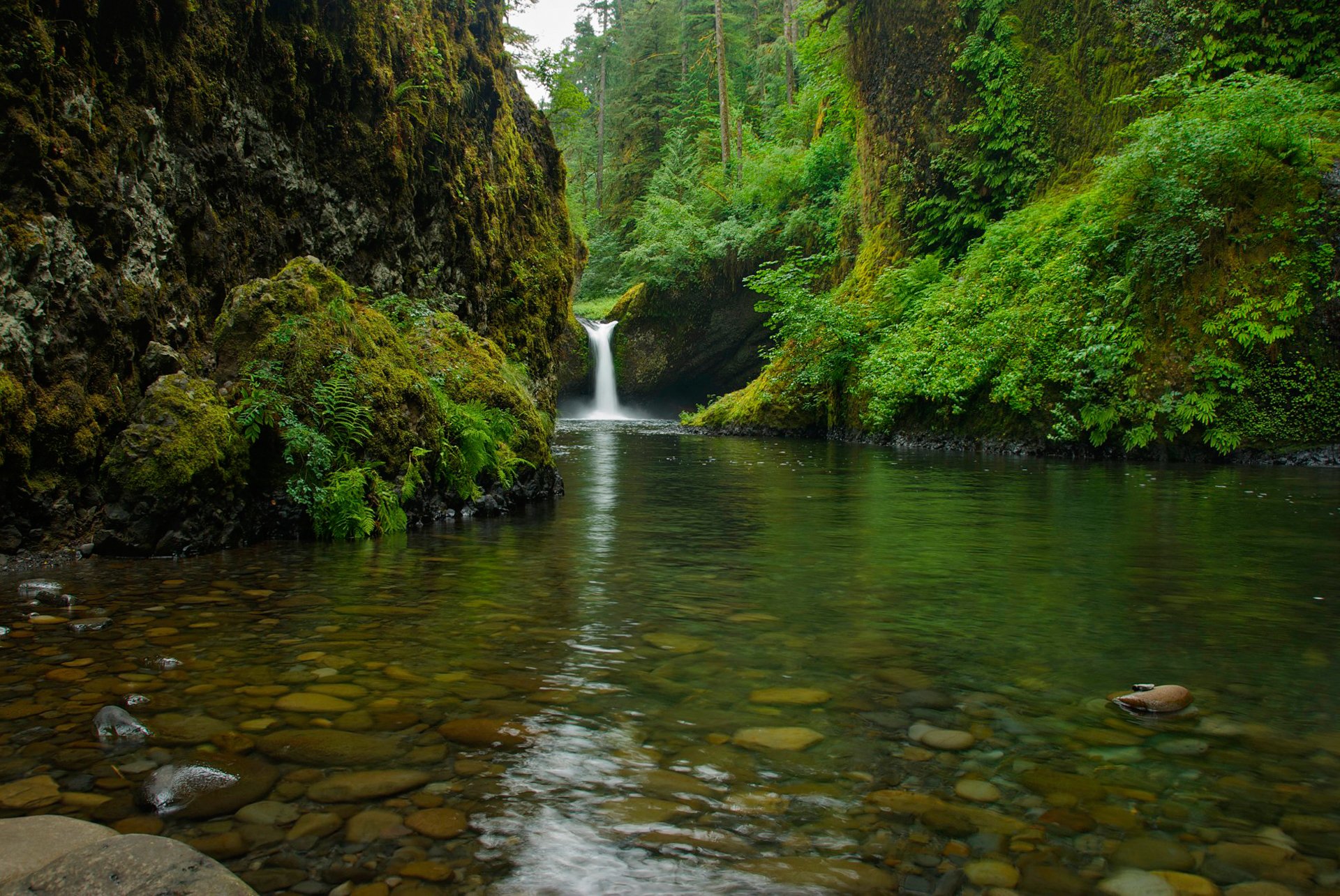 Árboles y cascada en el bosque