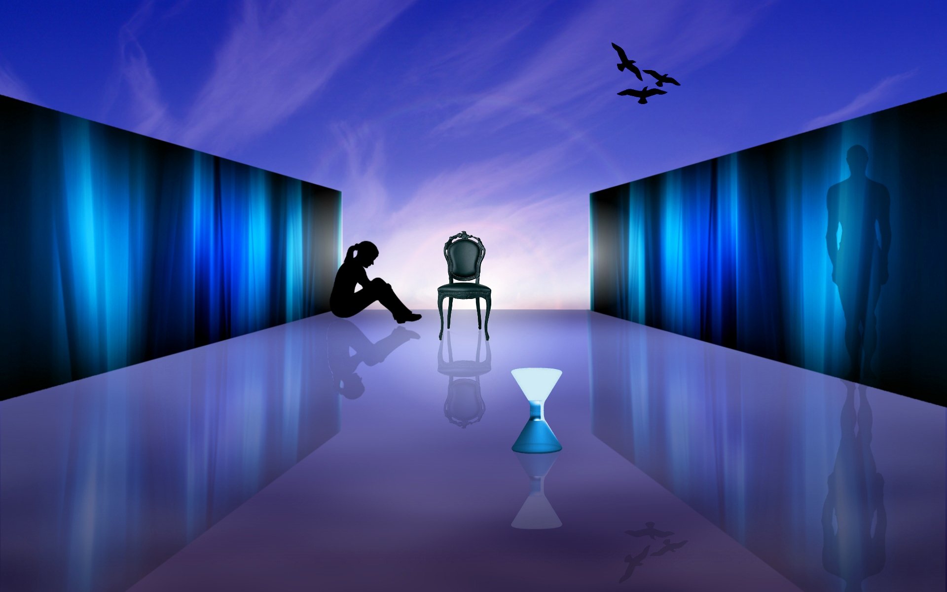 Silueta de una chica solitaria sentada en el sueloSilueta de una chica solitaria sentada en el Suelo