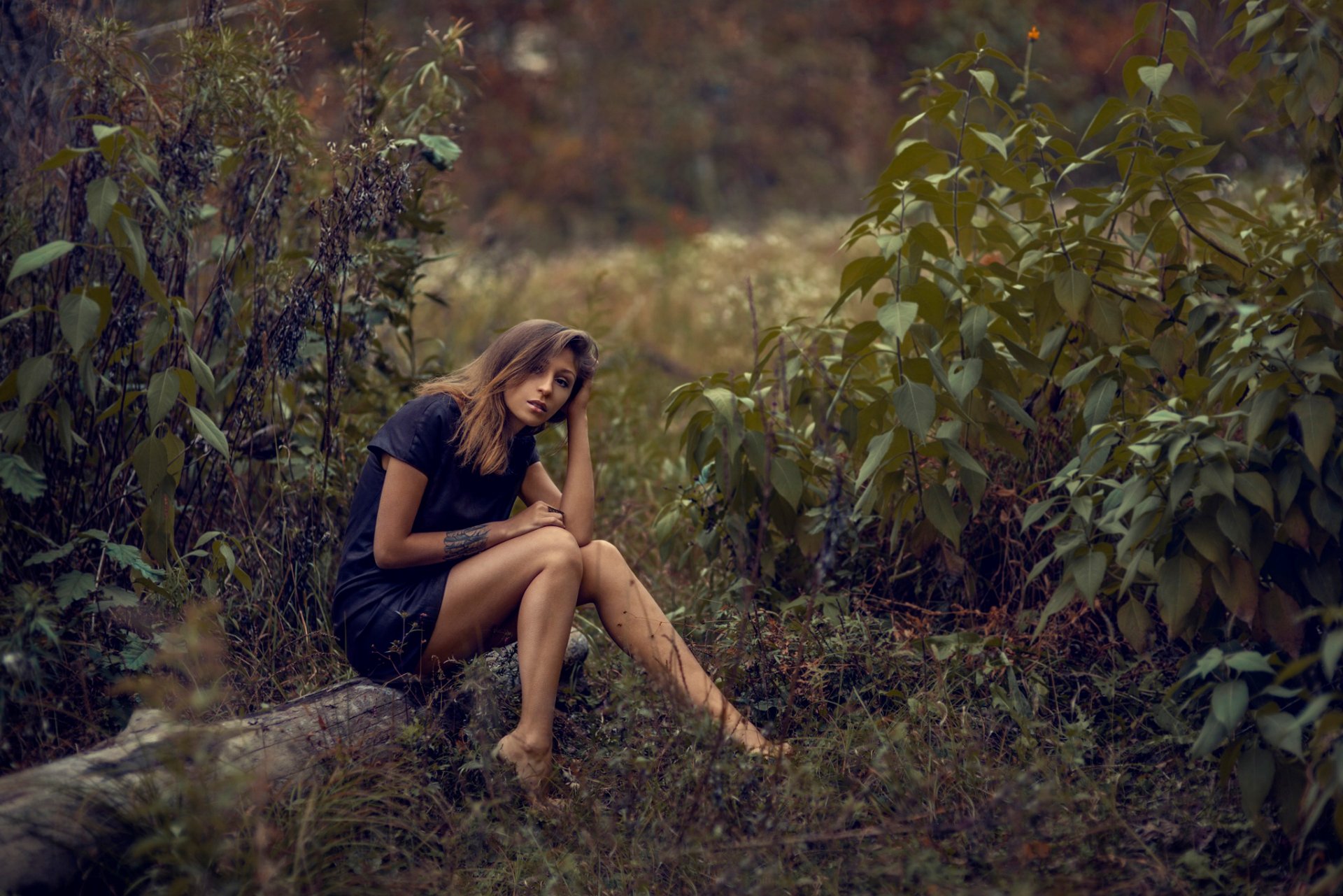 Foto de una chica con un tatuaje en el fondo de la naturalezaFoto de una chica con un tatuaje en el fondo de la naturaleza