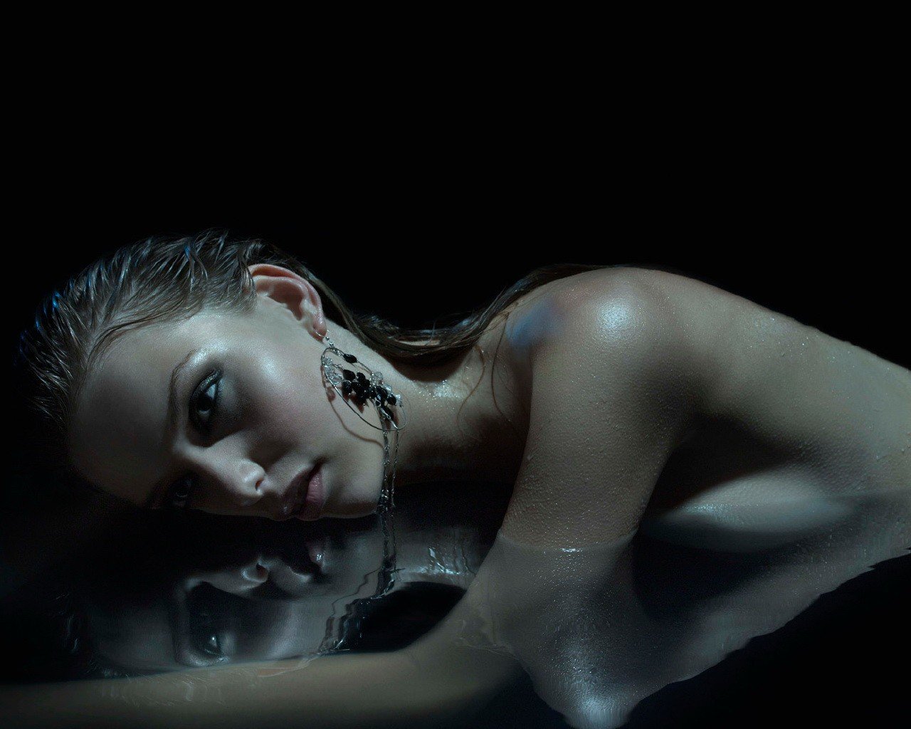 Chica desnuda yace en el agua