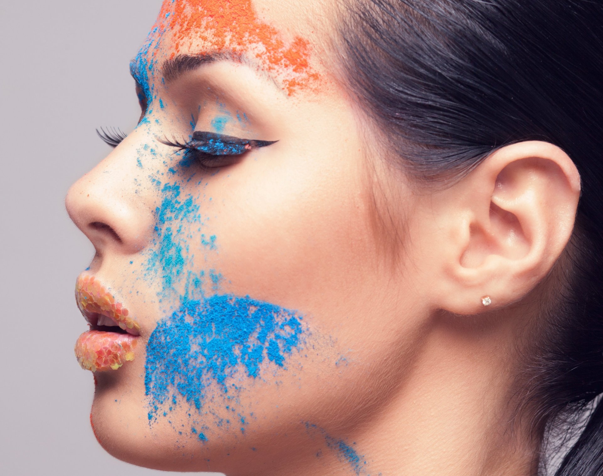 Chica con pestañas postizas y maquillaje multicolorChica con pestañas postizas y maquillaje multicolor