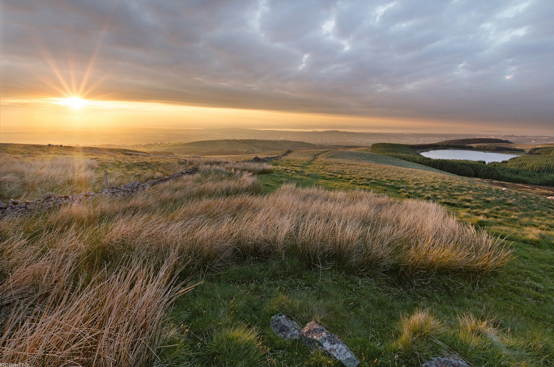 Amanecer en un campo de lavanda filmado en un ojo de pez