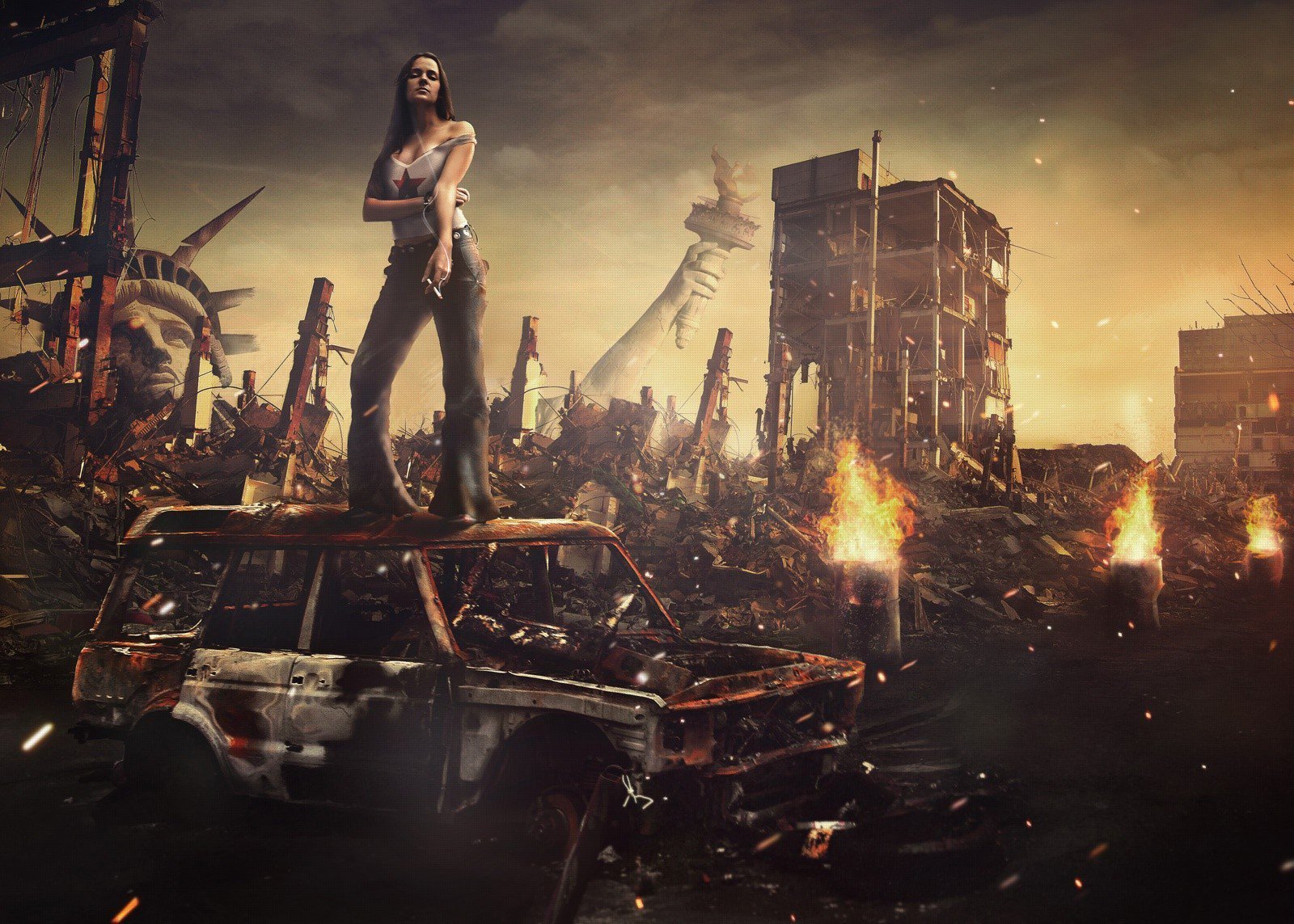 El post-apocalipsis de una mujer segura con un cocheEl post-Apocalipsis de una mujer segura con un coche