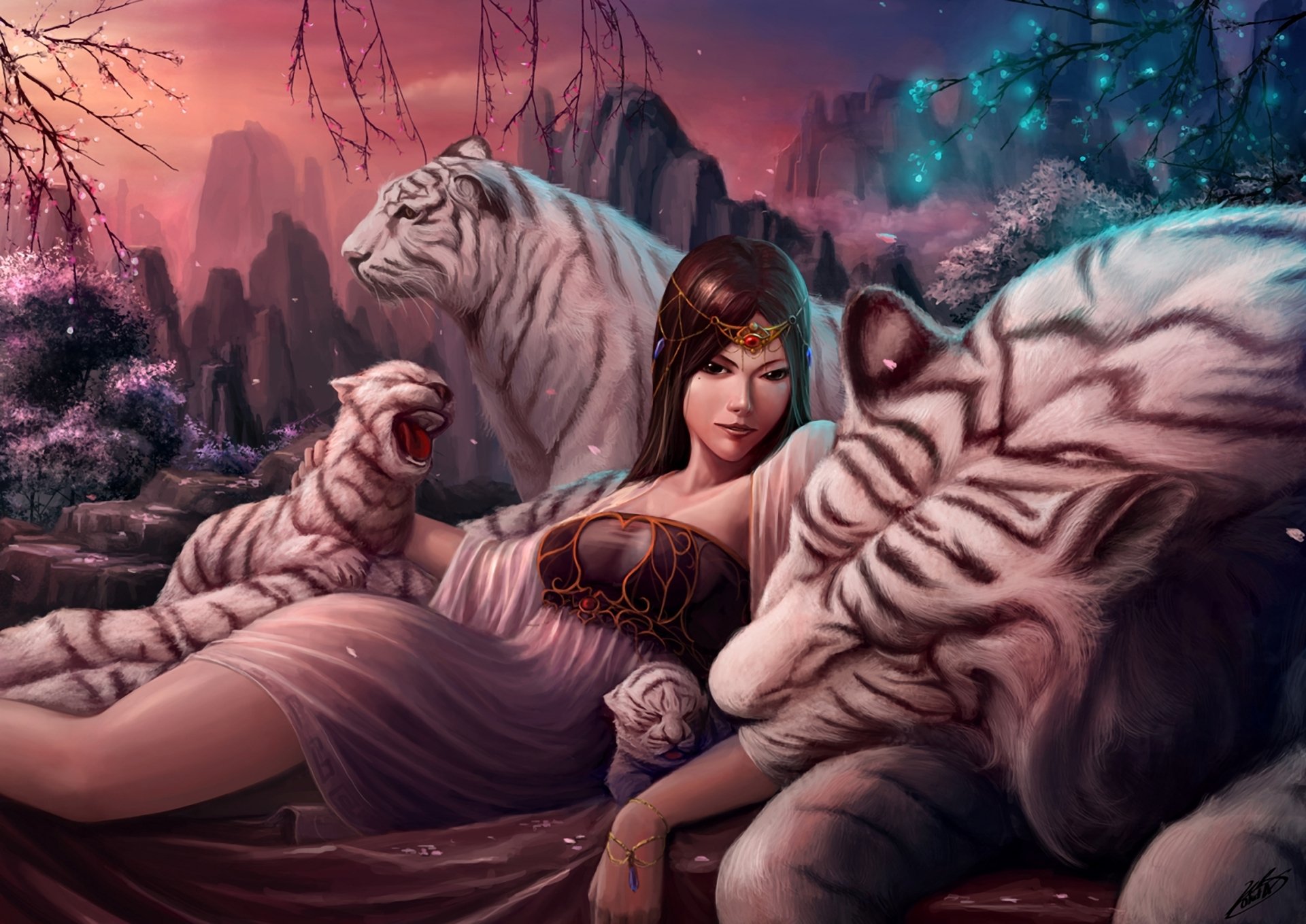 Tigre blanco con aspecto bien alimentado yace sobre una piedraTigre blanco con aspecto bien alimentado yace sobre una piedra