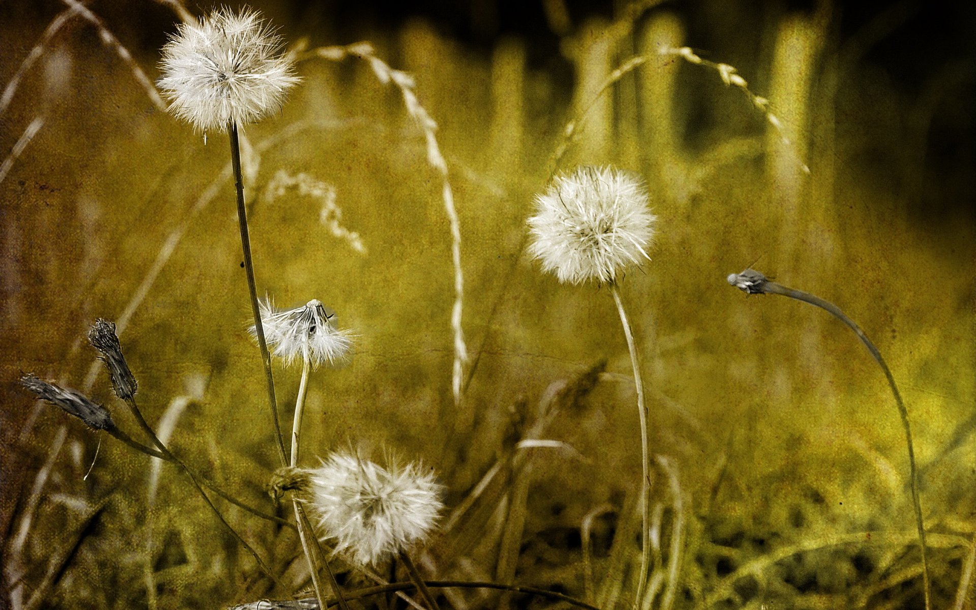 Campo de dientes de León esponjosos. Sólo Dun. Amigos del viento