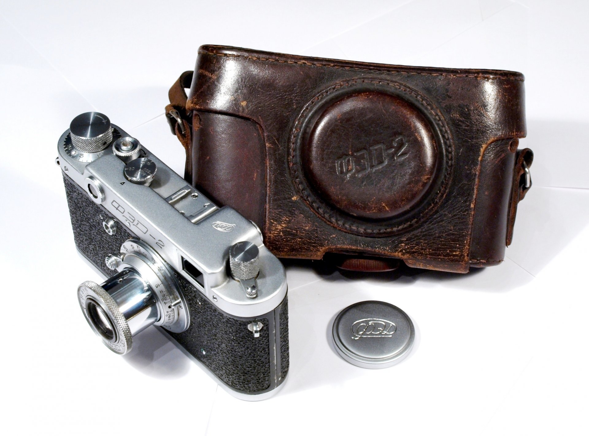 Cámara vieja con funda de cuero