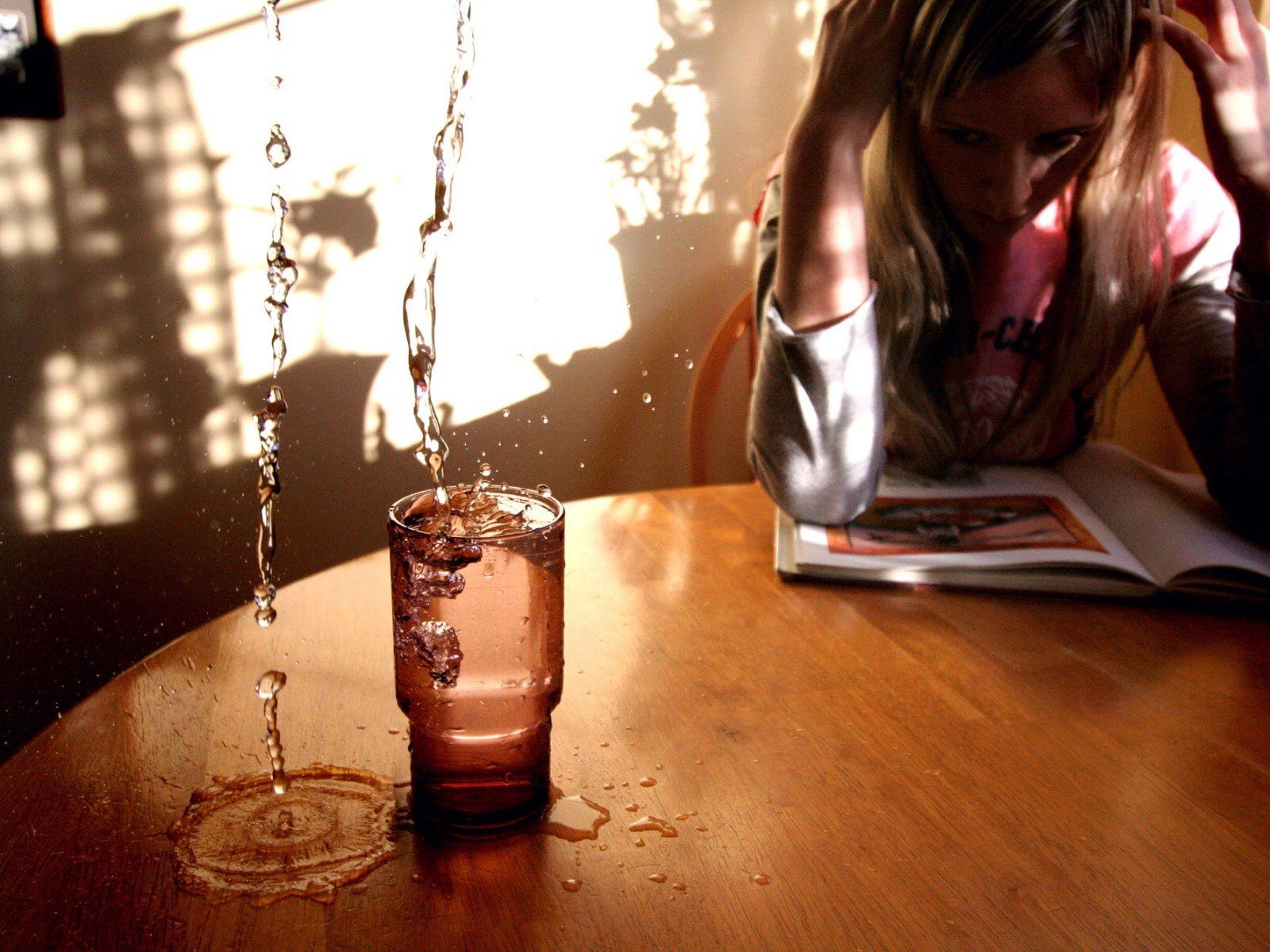 La niña hizo un chorro en el agua con el pelo mojadoLa niña hizo un chorro en el agua con el pelo mojado