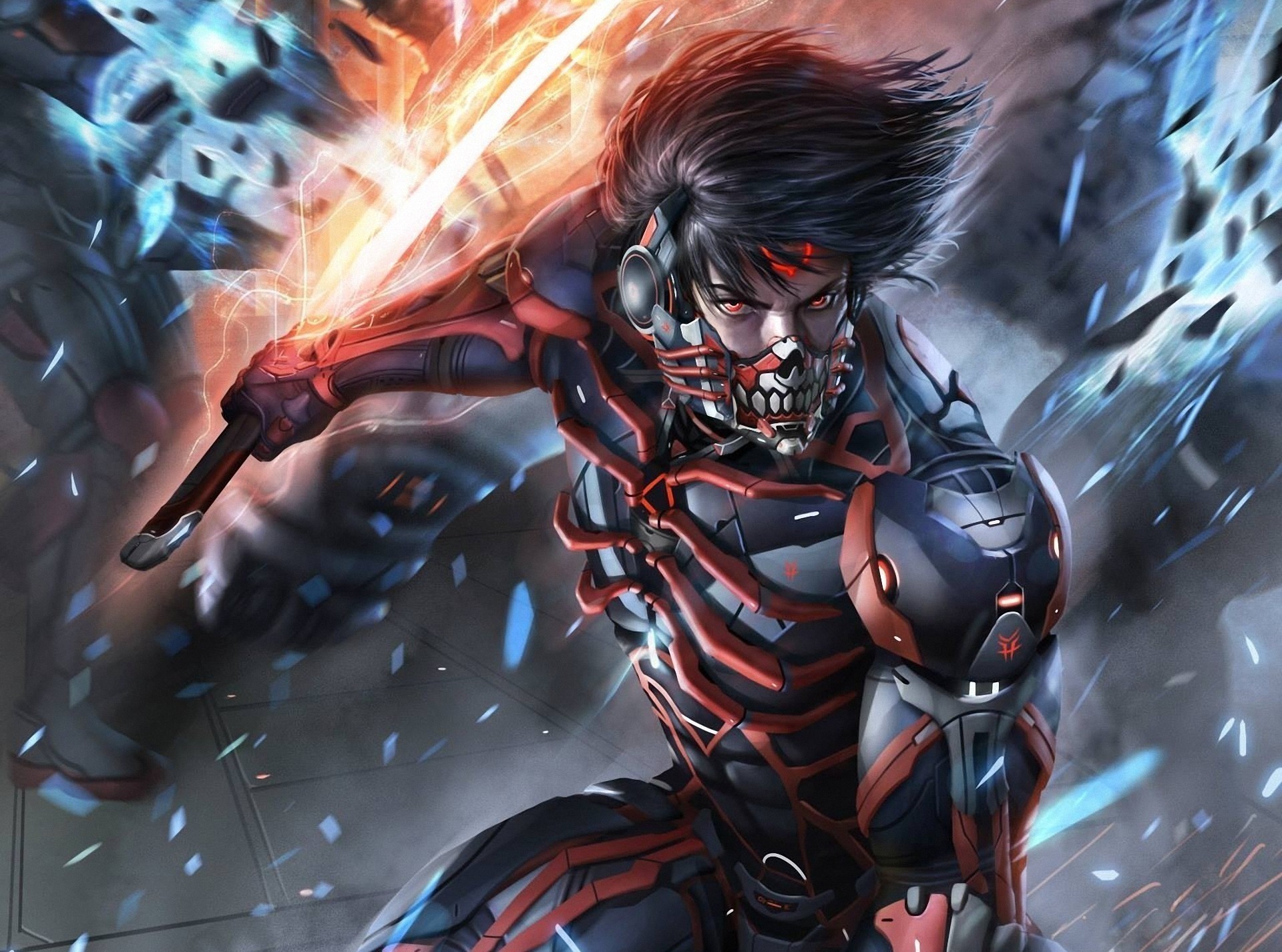 Una chica con un traje de protección se encuentra cerca de un monstruoUna chica con un traje de protección se encuentra cerca de un monstruo