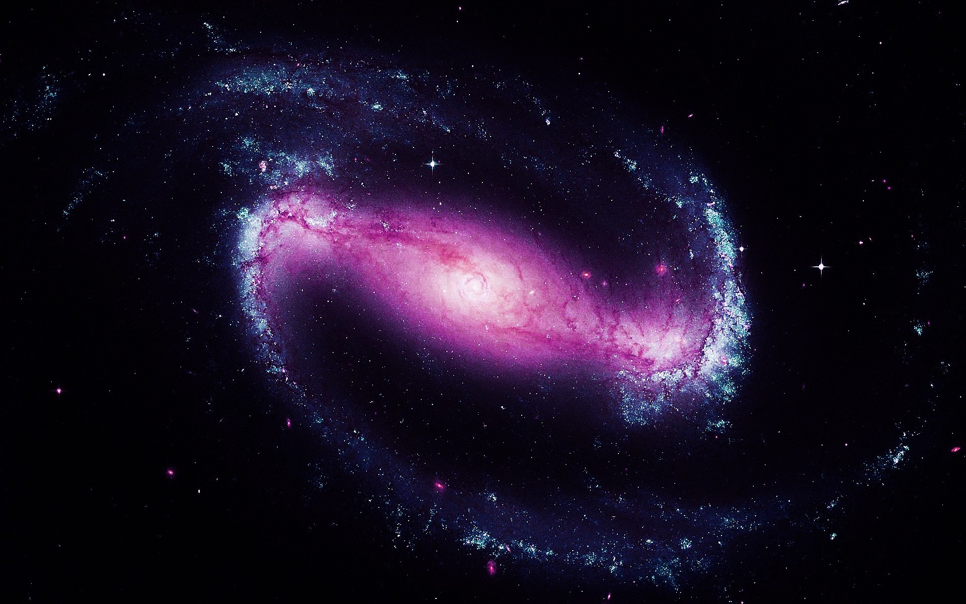 Resplandor rosa y azul en la nebulosa luminosa contra el fondo del cosmos negroResplandor rosa y azul en la nebulosa luminosa contra el fondo del Cosmos negro