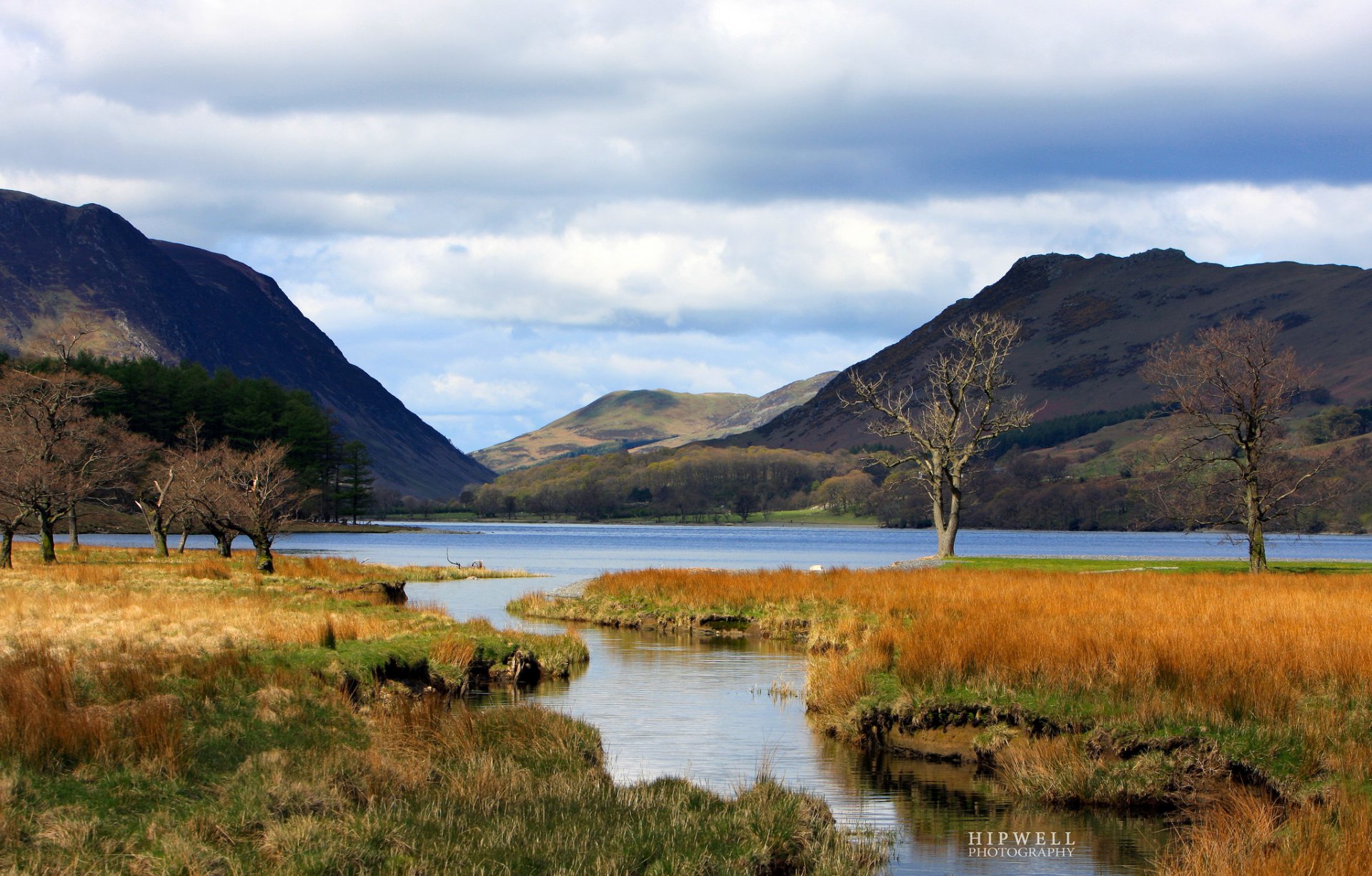 Nubes blancas que se reflejan en los lagos de escocia en el fondo de los árboles verdesNubes blancas que se reflejan en los lagos de Escocia en el fondo de los árboles verdes