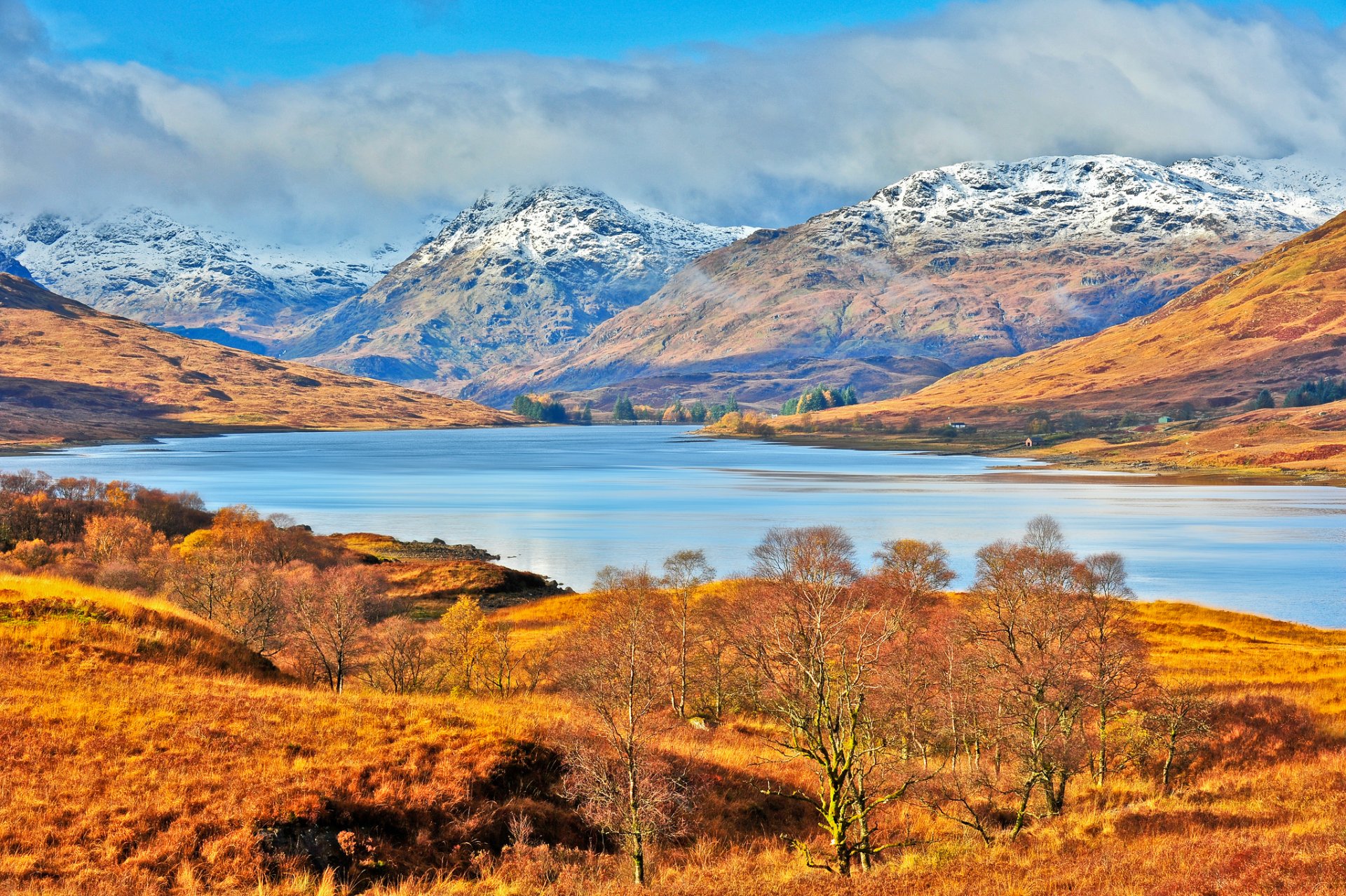 Montañas y lagos escoceses de otoño