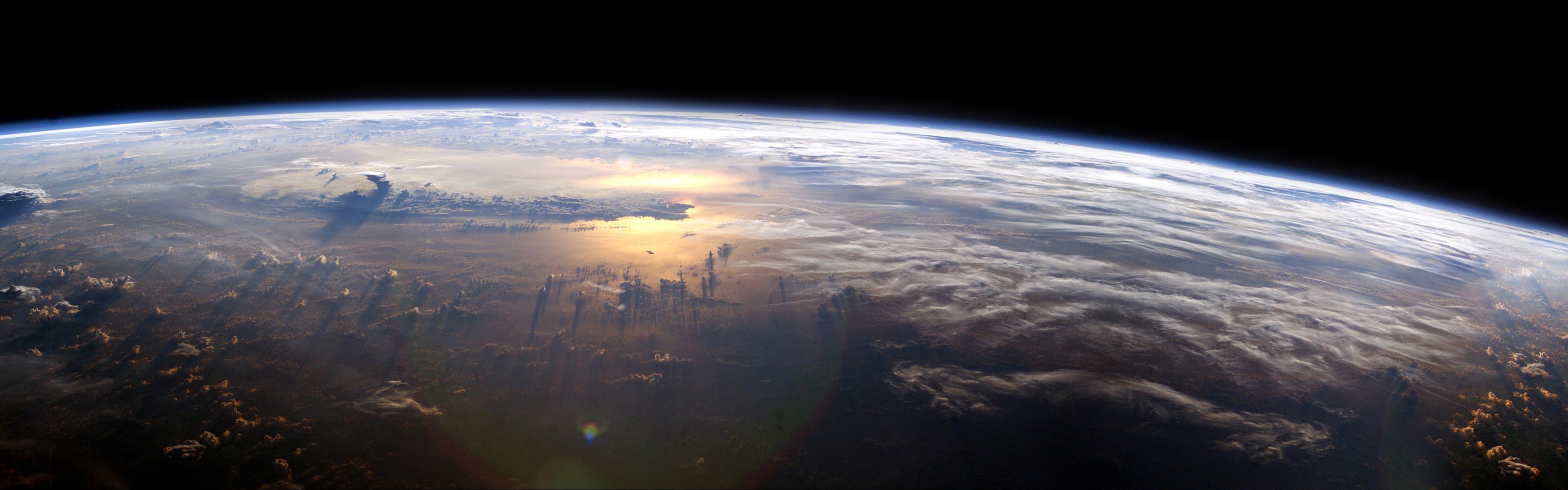 Vista desde arriba de una parte de la tierra lejos de la atmósfera