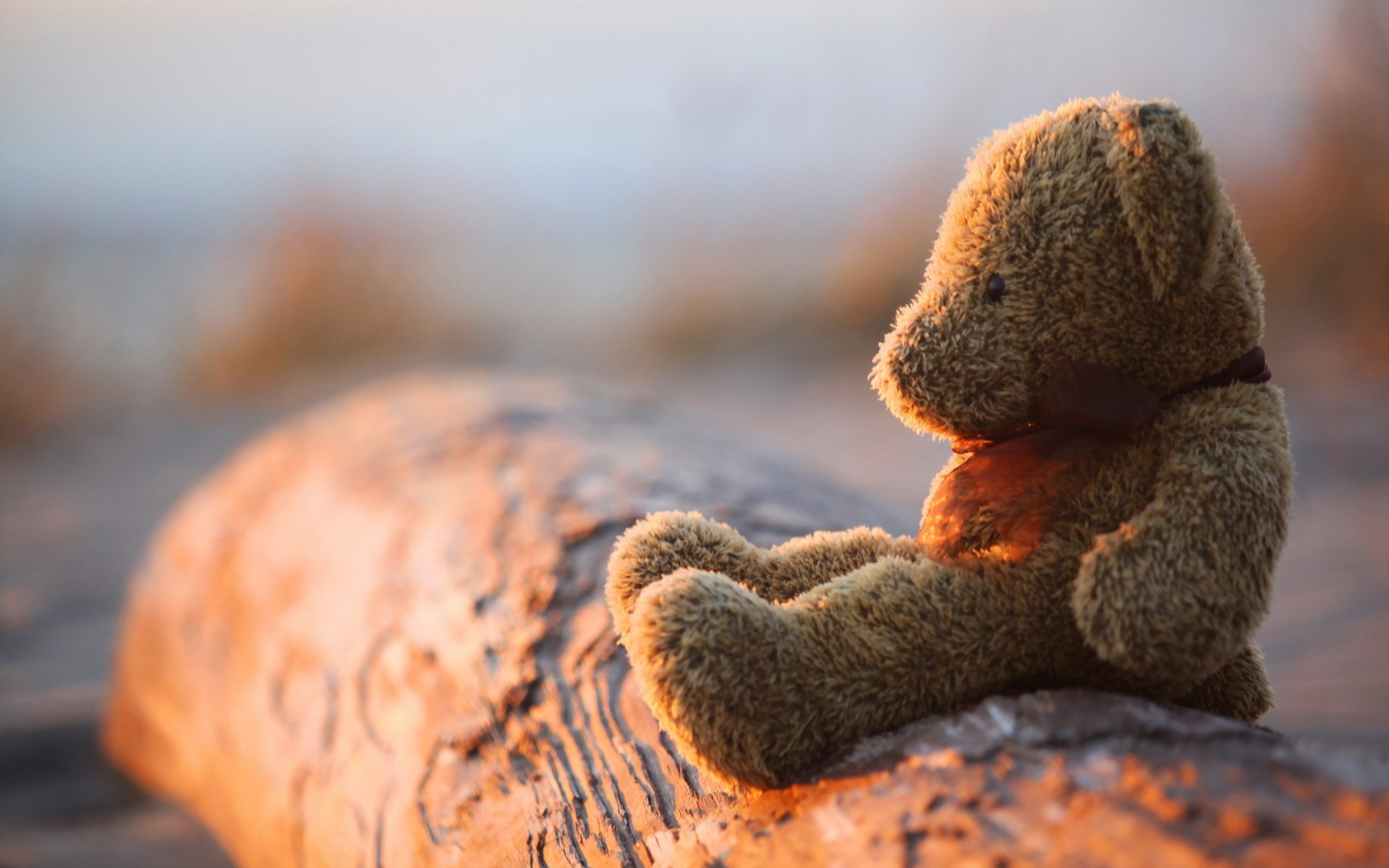Oso de peluche De juguete en un tronco - fondos de Escritorio